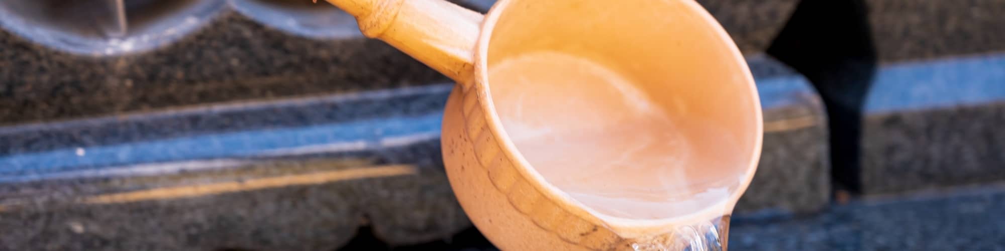墓石を水拭きし、砂、ホコリを拭き取ります。