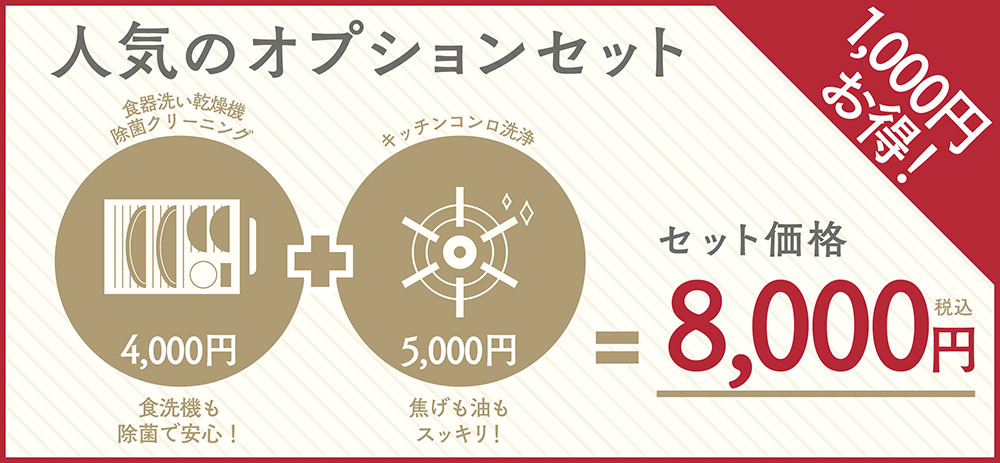 レンジフードとあわせて「食器洗い乾燥機除菌クリーニング(オプション)」もおすすめです。